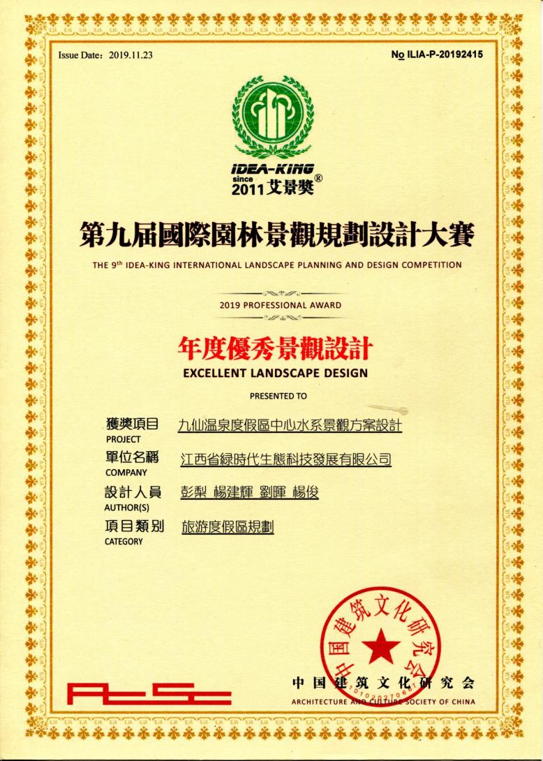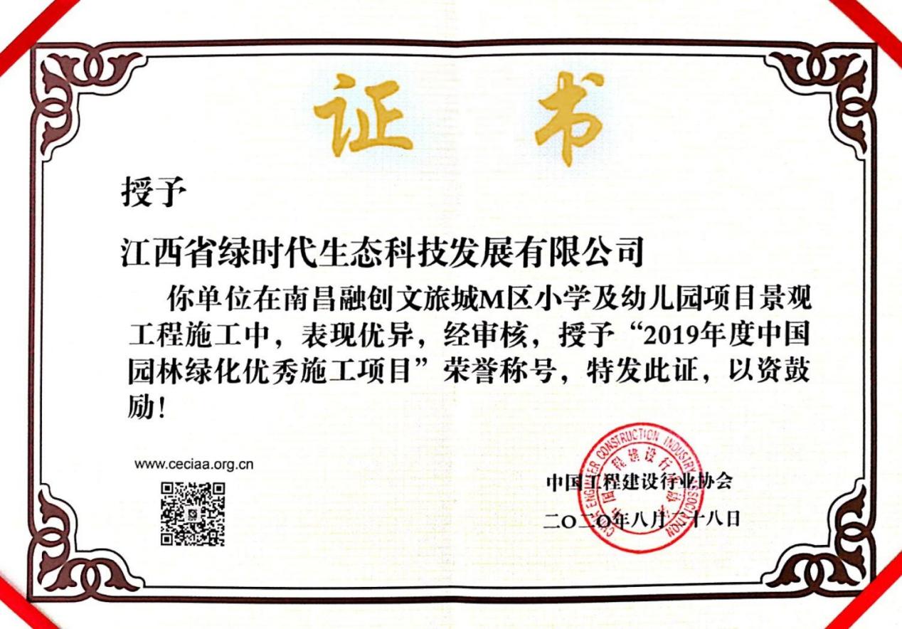 ? ? ? ?工匠精神筑標桿。綠時代擁有一支技術精湛的市政、園林景觀設計團隊和施工隊伍,先后參與了多個重大綜合性項目的設計和施工,充分展現綠時代公司市政、園林景觀設計、施工、養護等各方面的綜合實力。九仙溫泉度假區中心水系景觀方案設計榮獲第九屆國際園林景觀規劃設計大賽;2019年度優秀景觀設計獎;南昌融創文旅城M區小學及幼兒園項目景觀工程施工項目,被中國工程建設行業協會授予2019年度中國園林綠化優秀施工項目榮譽稱號。